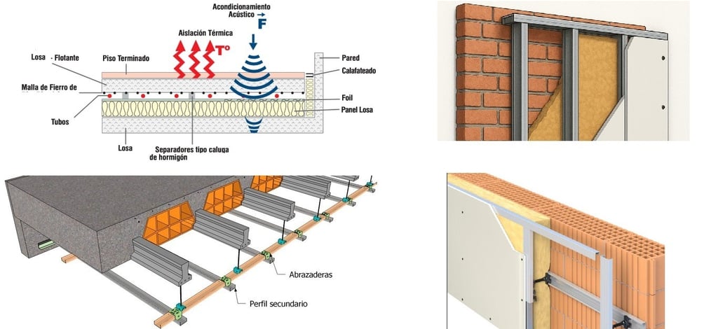 Montajes, aislamientos, revestimientos (aislamientos térmicos y acondicionamientos acústicos) y empleo de nuevos materiales de construcción, rehabilitación de viviendas,...