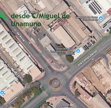 Desde Miguel de Unamuno (donde se encuentra Alcalá Magna) desembocando en la calle de Ávila en cruce con Glorieta donde se encuentra la gasolinera Galp.